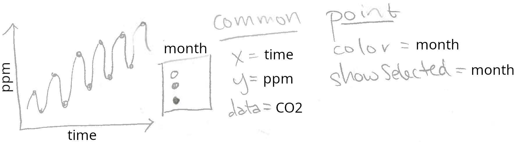 In fact, we have already used the showSelected keyword, which was automatically created by the interactive legends that we created in the previous two chapters. For example, consider the sketch below of the Keeling Curve data visualization from Chapter 1.