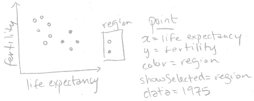 The sketch above specifies showSelected=region for the geom_point, meaning that it should show the subset of data for the selected regions.