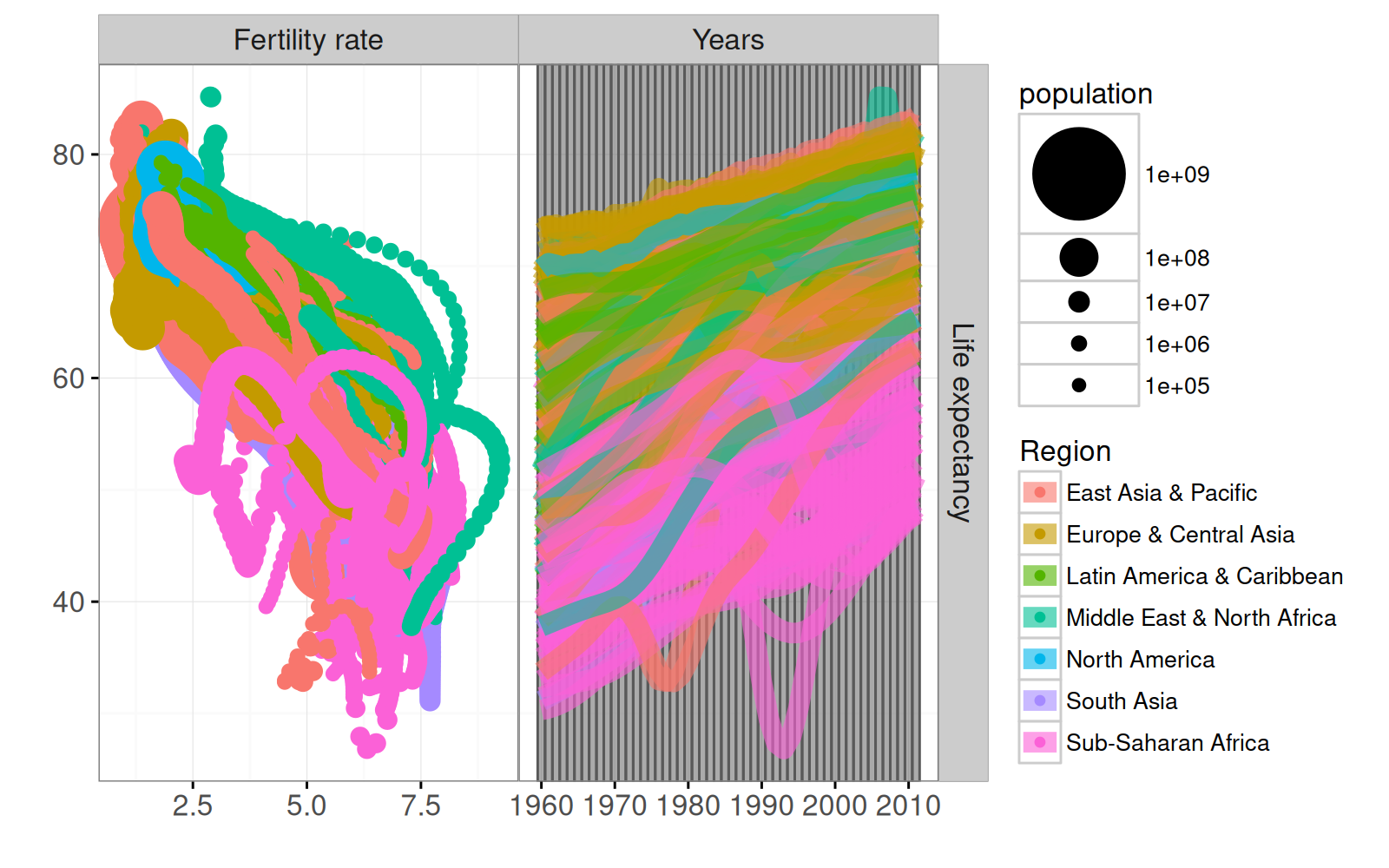 SCATTER <- function(df)FACETS(df, "Fertility rate", "Life expectancy")