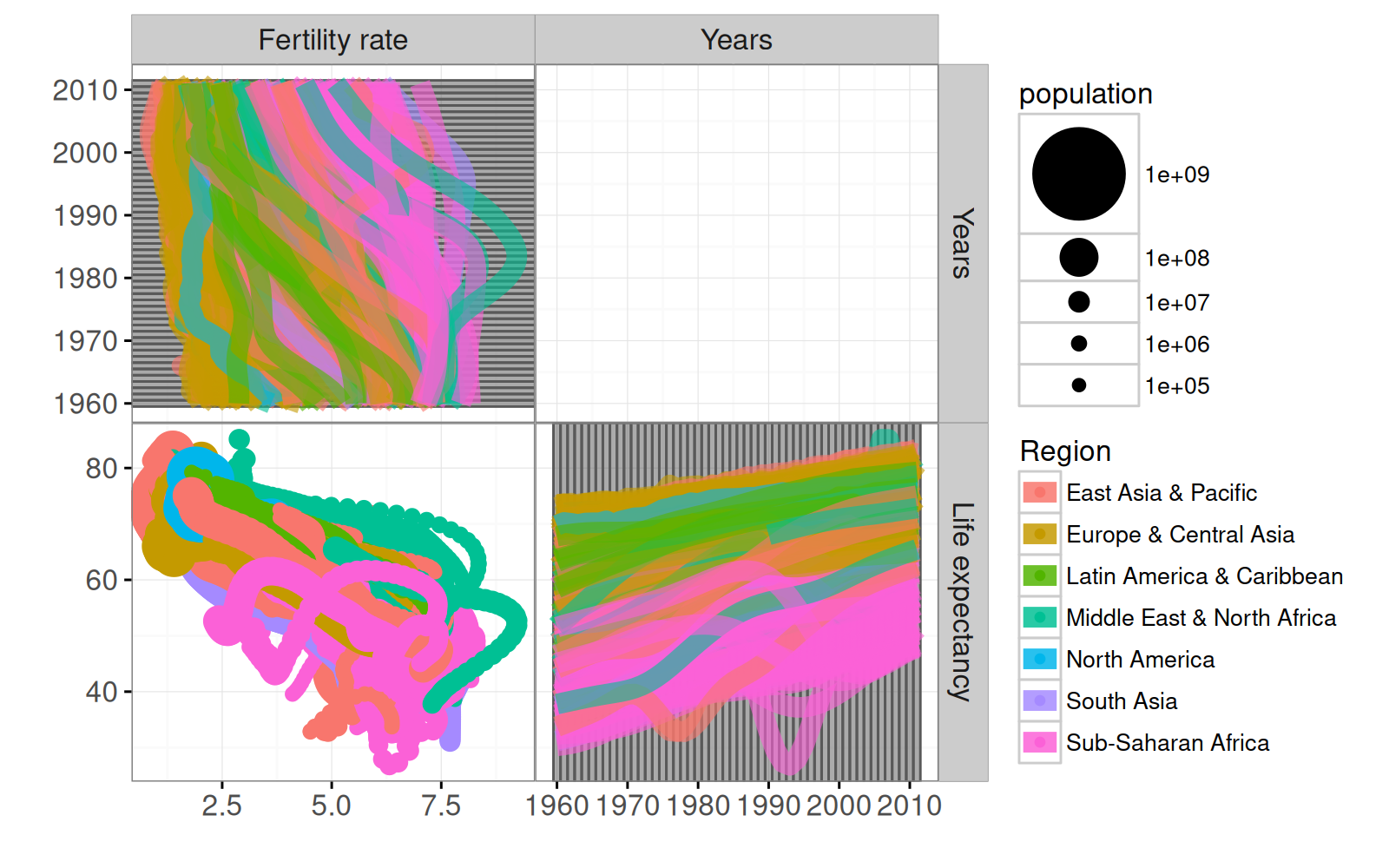 We showed how to create a multi-layer, multi-panel (but single-plot) visualization of the World Bank data.