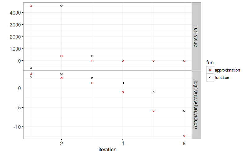 data=data.table(solution, y="fun.value", fun="approximation"))+