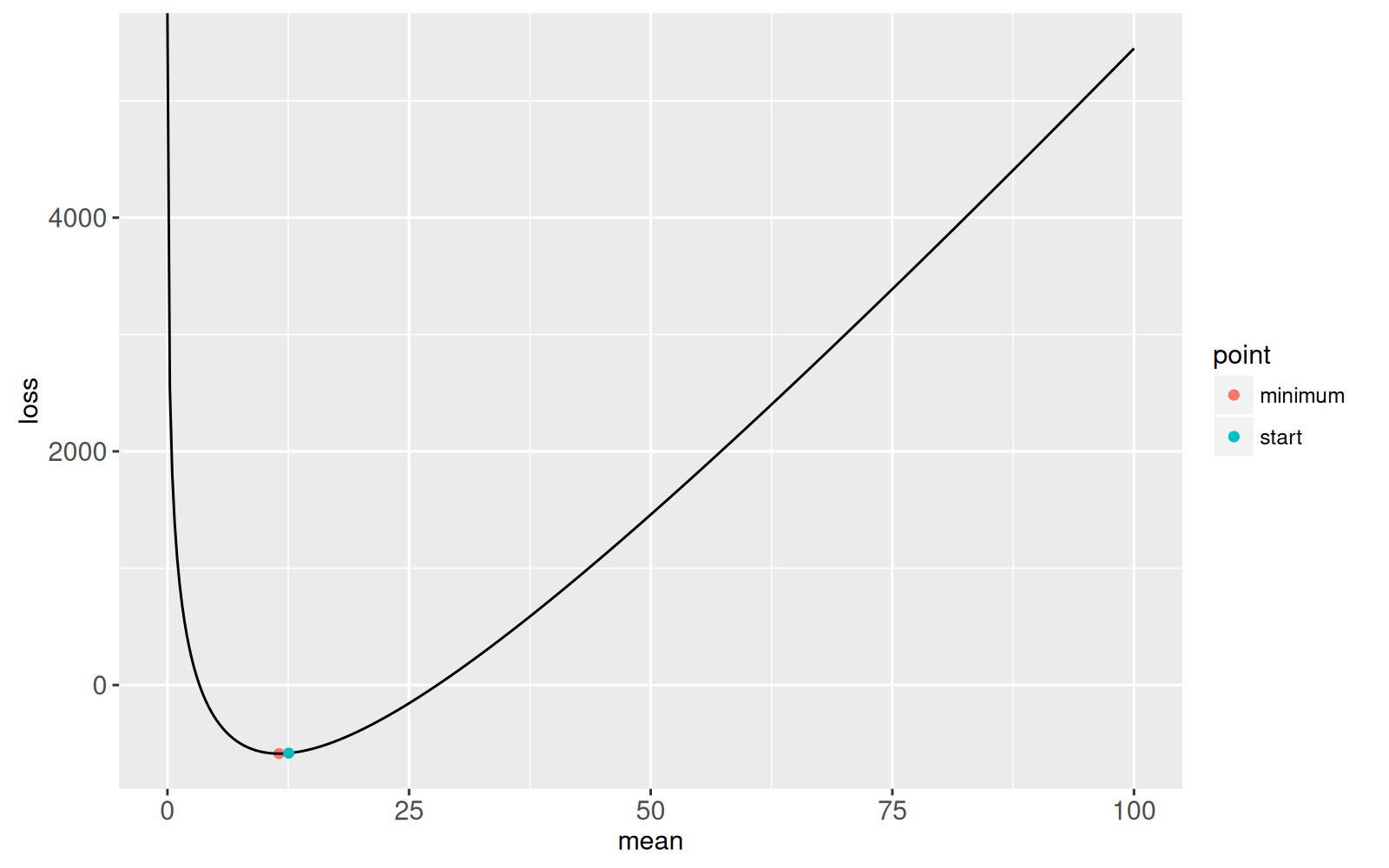 geom_point(aes(mean, loss, color=point), data=opt.dt)+