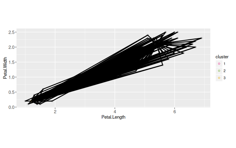 xend=center.Petal.Length, yend=center.Petal.Width),