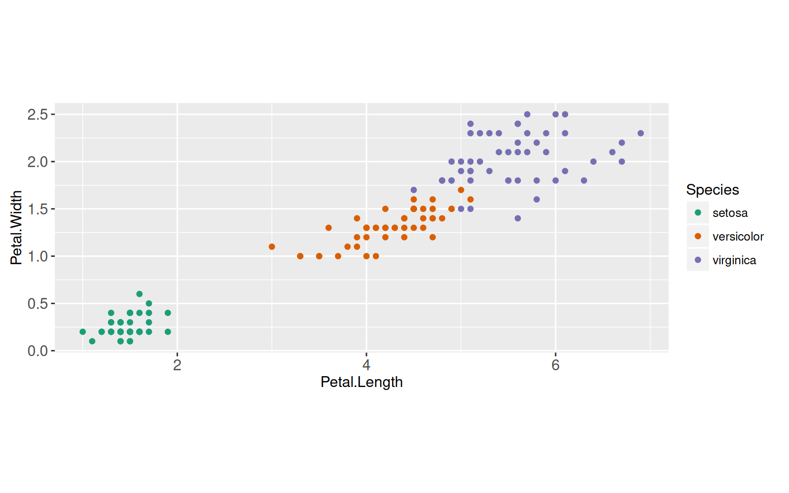 We begin with a typical visualization of the iris data, including a color legend to indicate the Species.
