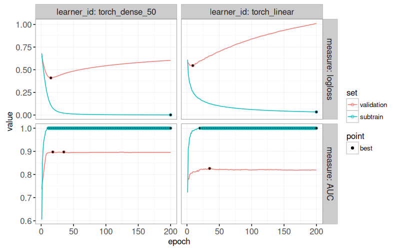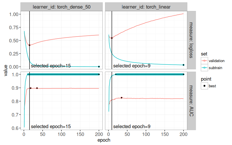 measure = mlr3::msr("classif.auc", minimize = FALSE))Next, we will define two learners that use library(torch). In this case, we need to define the learner using a list of pipe operations, which can be created using the helper function below.